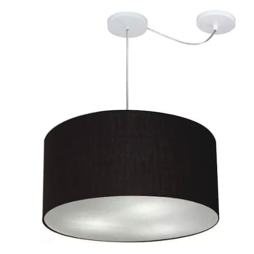 Lustre Pendente Cilíndrico Com Desvio Md-4238 Cúpula Tecido 45x25cm Preto