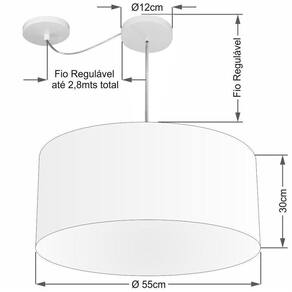 Pendente Com Desvio de Centro Indicado para decoração área interna, como mesas, sala de estar, sala de jantar, suite, quartos, corredor, hall, mezanino, escadas, churrasqueira, lareira, área de circulação, lojas, comércios, restaurante, varanda, balcão.DimensãoCúpula em Tecido: 55x30cm