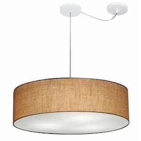 Lustre Pendente Cilíndrico Com Desvio Md-4265 Cúpula Tecido 60x15cm Palha