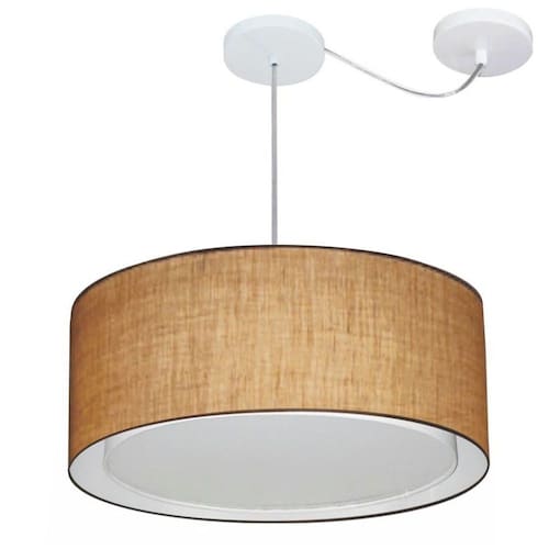 Lustre Pendente Cilíndrico Com Desvio Md-4314 Cúpula Tecido 50x25cm Palha