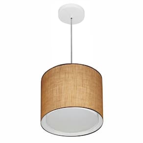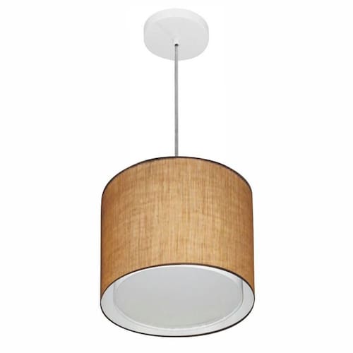 Lustre Pendente Cilíndrico Duplo Md-4284 Cúpula Tecido 30x30cm Palha