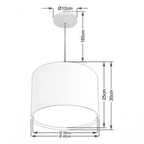 Pendente Moderno Indicado para decoração área interna, como mesas, sala de estar, sala de jantar, suite, quartos, corredor, hall, mezanino, escadas, churrasqueira, lareira, área de circulação, lojas, comércios, restaurante, varanda, balcão.DimensãoCúpula em Tecido: 40x30cm