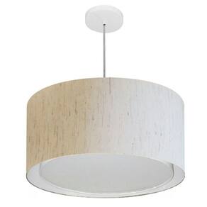 Lustre Pendente Cilíndrico Duplo Md-4295 Cúpula Tecido 50x30cm Linho Bege
