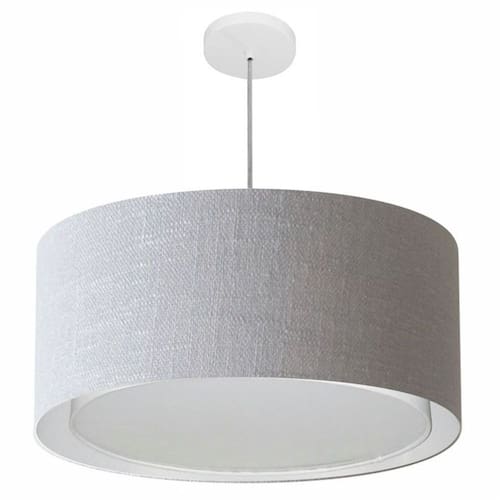 Lustre Pendente Cilíndrico Duplo Md-4298 Cúpula Tecido 60x30cm Rustico Cinza