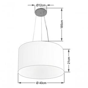 Pendente Moderno Indicado para decoração área interna, como mesas, sala de estar, sala de jantar, suíte, quartos, corredor, hall, mezanino, escadas, churrasqueira, lareira, área de circulação, lojas, comércios, restaurante, varanda, balcão.DimensãoCúpula em Tecido: 40x21cm