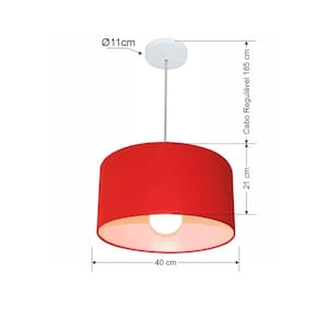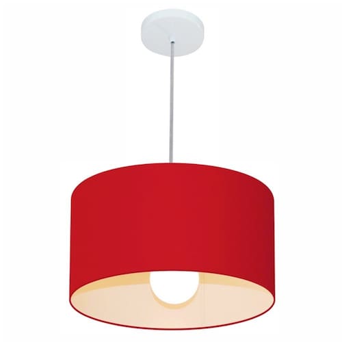 Lustre Pendente Cilíndrico Md-4031 Cúpula Tecido 40x21cm Vermelho
