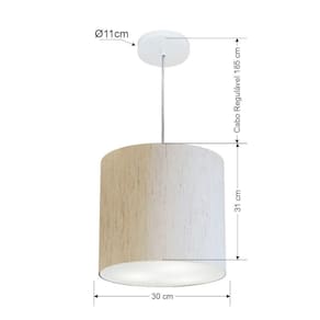 Pendente Moderno Indicado para decoração área interna, como mesas, sala de estar, sala de jantar, suíte, quartos, corredor, hall, mezanino, escadas, churrasqueira, lareira, área de circulação, lojas, comércios, restaurante, varanda, balcão.DimensãoCúpula em Tecido: 30x31cm