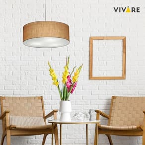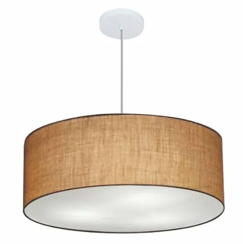 Lustre Pendente Cilíndrico Md-4079 Cúpula Tecido 60x21cm Palha