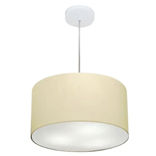 Lustre Pendente Cilíndrico Md-4099 Cúpula Tecido 40x25cm Algodão Crú