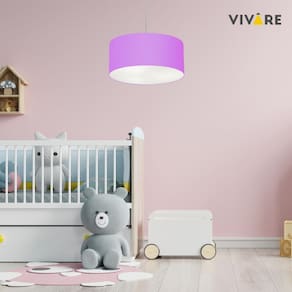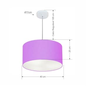 Lustre Pendente Cilíndrico Md-4099 Cúpula Tecido 40x25cm Lilás