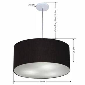 Pendente Moderno Indicado para decoração área interna, como mesas, sala de estar, sala de jantar, suíte, quartos, corredor, hall, mezanino, escadas, churrasqueira, lareira, área de circulação, lojas, comércios, restaurante, varanda, balcão.DimensãoCúpula em Tecido: 50x25cm
