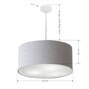Lustre Pendente Cilíndrico Md-4100 Cúpula Tecido 50x25cm Rustico Cinza