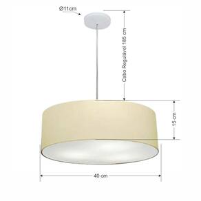 Pendente Moderno Indicado para decoração área interna, como mesas, sala de estar, sala de jantar, suíte, quartos, corredor, hall, mezanino, escadas, churrasqueira, lareira, área de circulação, lojas, comércios, restaurante, varanda, balcão.DimensãoCúpula em Tecido: 40x15cm