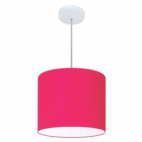 Lustre Pendente Cilíndrico Md-4143 Cúpula Tecido 35x25cm Rosa Pink