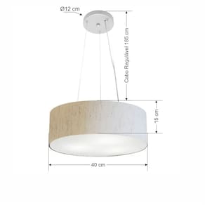 Lustre Pendente Cilíndrico Md-4181 Cúpula Tecido 40x15cm Linho Bege