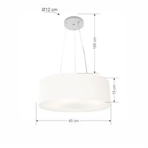 Lustre Pendente Cilíndrico Md-4184 Cúpula Tecido 45x15cm Branco