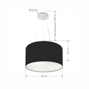 Lustre Pendente Cilíndrico Md-4186 Cúpula Tecido 45x25cm Preto