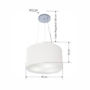 Lustre Pendente Cilíndrico Md-4187 Cúpula Tecido 45x30cm Branco