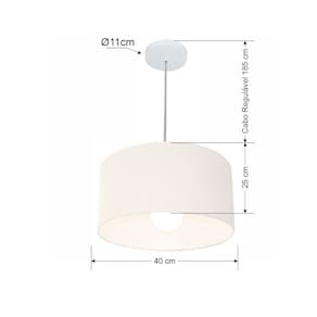 Lustre Pendente Cilíndrico Md-4202 Cúpula Tecido 40x25cm Branco