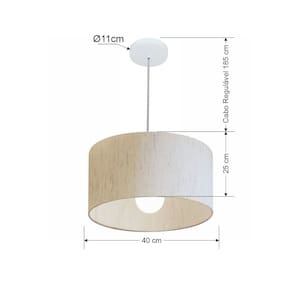 Lustre Pendente Cilíndrico Md-4202 Cúpula Tecido 40x25cm Linho Bege