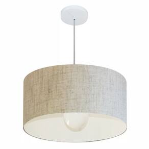 Lustre Pendente Cilíndrico Md-4206 Cúpula Tecido 50x25cm Rustico Bege