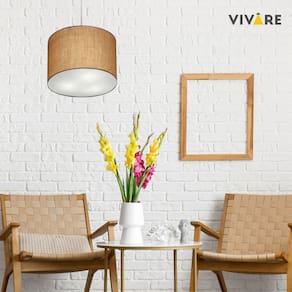 Lustre Pendente Cilíndrico Md-4210 Cúpula Tecido 30x25cm Palha