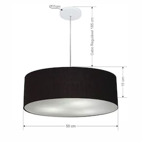 Lustre Pendente Cilíndrico Md-4217 Cúpula em Tecido 50x15cm Preto