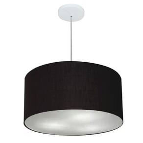Lustre Pendente Cilíndrico Md-4242 Cúpula Tecido 45x25cm Preto