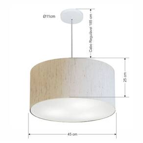 Lustre Pendente Cilíndrico Md-4243 Cúpula Tecido 45x25cm Rustico Bege