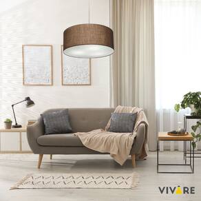 Lustre Pendente Cilíndrico Md-4250 Cúpula Tecido 45x30cm Café