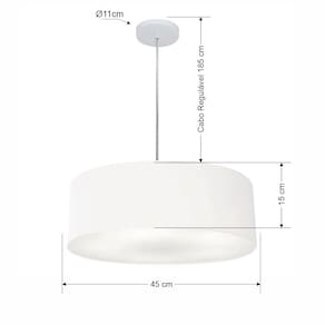 Lustre Pendente Cilíndrico Md-4254 Cúpula Tecido 45x15cm Branco