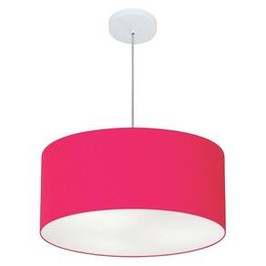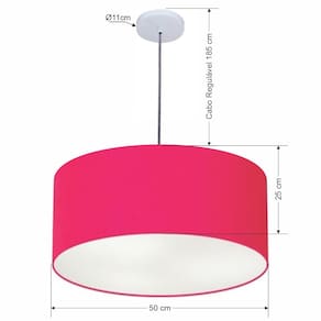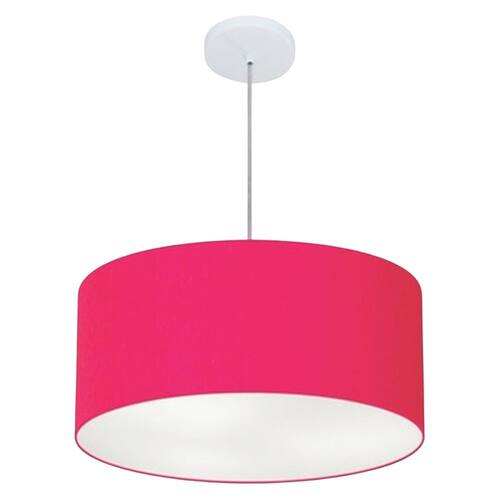 Lustre Pendente Cilíndrico Vivare Free Lux Pe-4386BR Cúpula em Tecido - 50X25cm - Cor: Pink | Cor da Canopla: Canopla branca e fio cristal