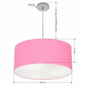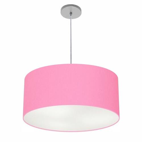 Lustre Pendente Cilíndrico Vivare Free Lux Pe-4386CZ Cúpula em Tecido - 50X25cm - Cor: Rosa-bebê | Cor da Canopla: Canopla cinza e fio cristal