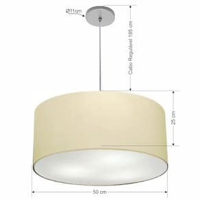 Lustre Pendente Cilíndrico Vivare Free Lux Pe-4386CZ Cúpula em Tecido - 50X25cm