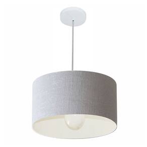 Lustre Pendente Cilíndrico Vivare Md-4031 Cúpula em Tecido 40x21cm - Bivolt - Cor: Rustico-cinza | Voltagem: 127/220V