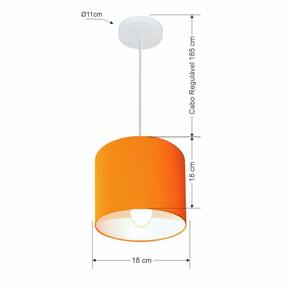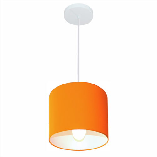 Lustre Pendente Cilíndrico Vivare Md-4046 Cúpula em Tecido 18x18cm - Bivolt - Cor: Laranja | Voltagem: 127/220V