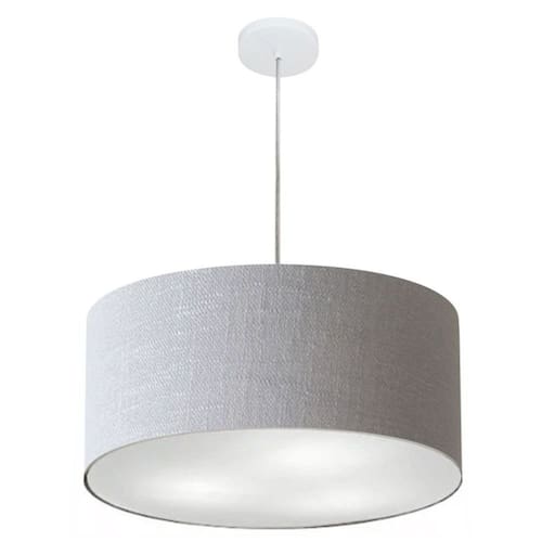 Lustre Pendente Cilíndrico Vivare Md-4049 Cúpula em Tecido 50x21cm - Bivolt - Cor: Rustico-cinza | Voltagem: 127/220V