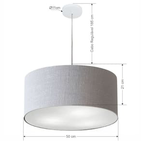 Lustre Pendente Cilíndrico Md-4049 Cúpula Tecido 50x21cm