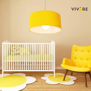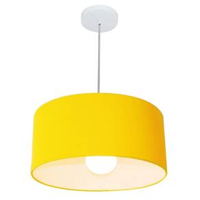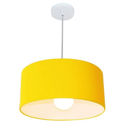 Lustre Pendente Cilíndrico Vivare Md-4052 Cúpula em Tecido 50x21cm - Bivolt - Cor: Amarelo | Voltagem: 127/220V