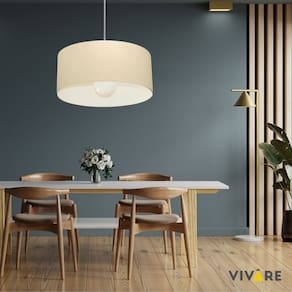 Lustre Pendente Cilíndrico Vivare Md-4052 Cúpula Tecido 50x21cm