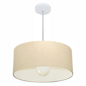 Lustre Pendente Cilíndrico Vivare Md-4052 Cúpula em Tecido 50x21cm - Bivolt - Cor: Algodão-Crú | Voltagem: 127/220V
