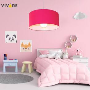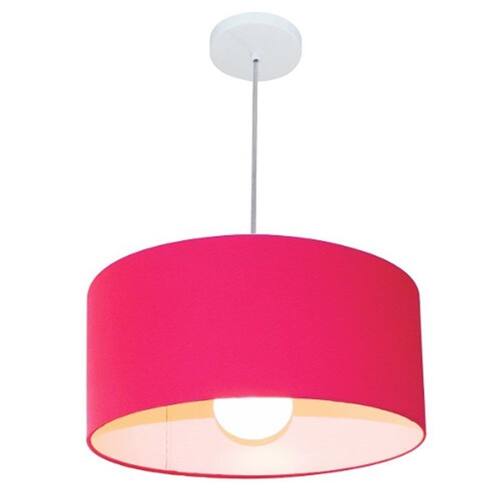 Lustre Pendente Cilíndrico Vivare Md-4052 Cúpula em Tecido 50x21cm - Bivolt - Cor: Rosa-Pink | Voltagem: 127/220V
