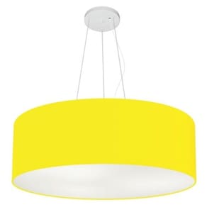 Lustre Pendente Cilíndrico Vivare Md-4070 Cúpula em Tecido 80x30cm - Bivolt - Cor: Amarelo | Voltagem: 127/220V