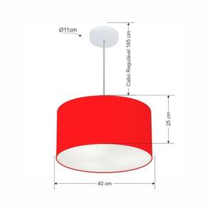 Lustre Pendente Cilíndrico Vivare Md-4099 Cúpula em Tecido 40x25cm - Bivolt - Cor: Vermelho | Voltagem: 127/220V