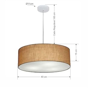 Lustre Pendente Cilíndrico Vivare Md-4132 Cúpula Tecido 40x15cm
