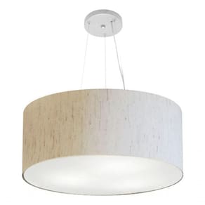 Lustre Pendente Cilíndrico Vivare Md-4188 Cúpula Em Tecido 50x25cm - Bivolt Linho Bege 127/220v