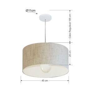 Lustre Pendente Cilíndrico Vivare Md-4204 Cúpula em Tecido 45x25cm - Bivolt - Cor: Rustico-bege | Voltagem: 127/220V