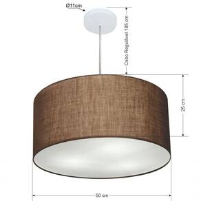 Lustre Pendente Cilíndrico Vivare Md-4213 Cúpula Em Tecido 50x30cm - Bivolt Café 127/220v