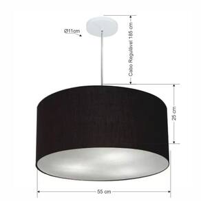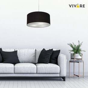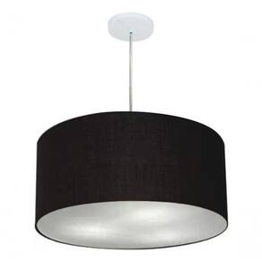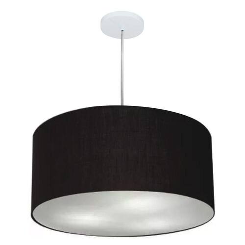 Lustre Pendente Cilíndrico Vivare Md-4214 Cúpula Em Tecido 55x25cm - Bivolt Canopla-preta 127/220v