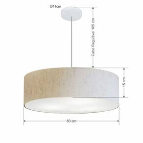 Lustre Pendente Cilíndrico Vivare Md-4221 Cúpula em Tecido 60x15cm - Bivolt - Cor: Linho Bege | Voltagem: 127/220V